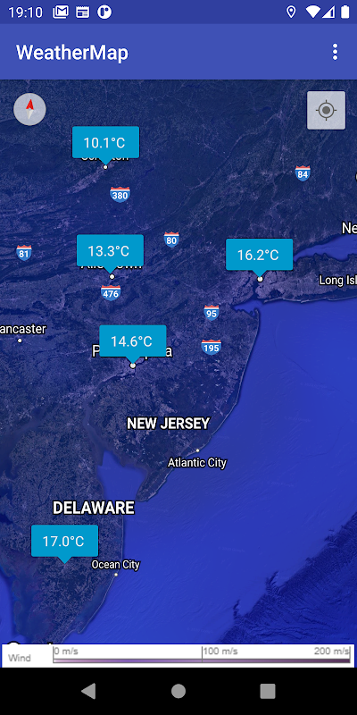WeatherMap ini adalah aplikasi sederhana yang menampilkan cuaca di peta. Peta ini menunjukkan suhu untuk beberapa kota utama dan memungkinkan Anda untuk menerapkan lapisan pada peta.