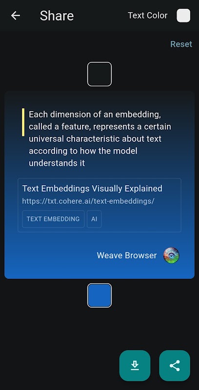 Memperkenalkan Weave Browser - alat pamungkas bagi siapa saja yang suka belajar dan membuat koneksi lebih cepat. Aplikasi seluler kami memungkinkan Anda menyorot dan menandai konten di internet, membuat vektor penyisipan teks yang menangkap makna dari hal-hal yang menurut Anda menarik.