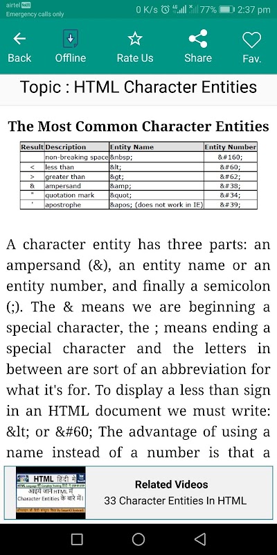 The app provides quick revision and reference to the important topics like a detailed HTML ,WWW , XML , JAVAScript , CGI & JSON.