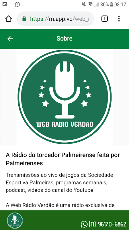 A rádio do torcedor Palmeirense! Transmissões ao vivo de jogos da Sociedade Esportiva Palmeiras, programas semanais, podcast, vídeos do canal do Youtube.