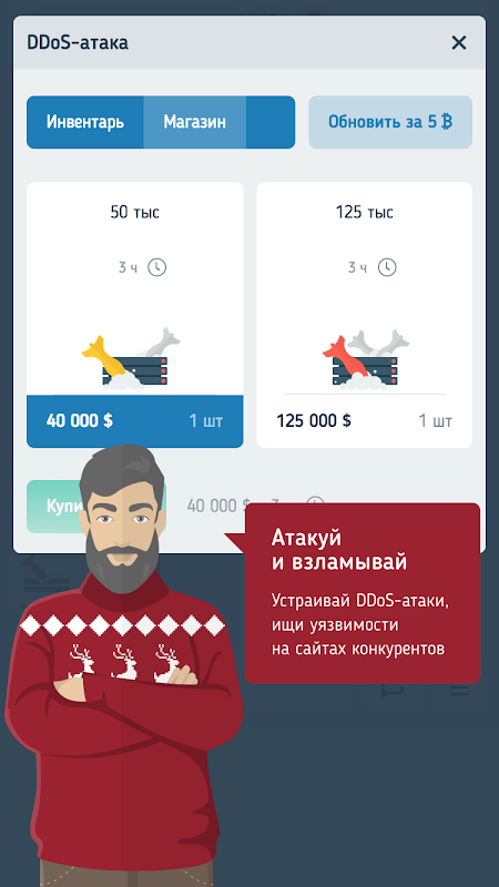Взломы доступны с 13 уровня. Находите цель через рейтинг, заходите, и ставьте сотрудника на взлом. Естественно, для взлома нужен хороший программист. При удачном взломе можно будет удалить рекламу, украсть контент, срезать поисковый трафик, уменьшить лимит хостинга или украсть часть трафика.