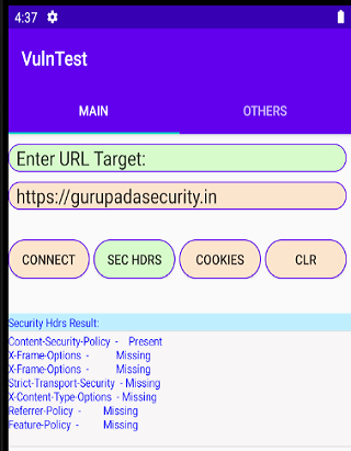 • Sec Hdrs – This button gives a list of advised Security Headers that the App should be using as part of HTTP services, and gives a quick view of what Headers are missing.