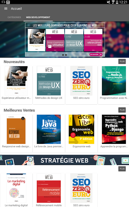 Compatible avec une très grande majorité de smartphones et tablettes sous Android, l'application vous permettra de suivre toutes les sorties à venir, que vous soyez un professionnel du web ou un simple amateur. En plus, il est possible de prévisualiser tous les ebooks disponibles dans l'application.