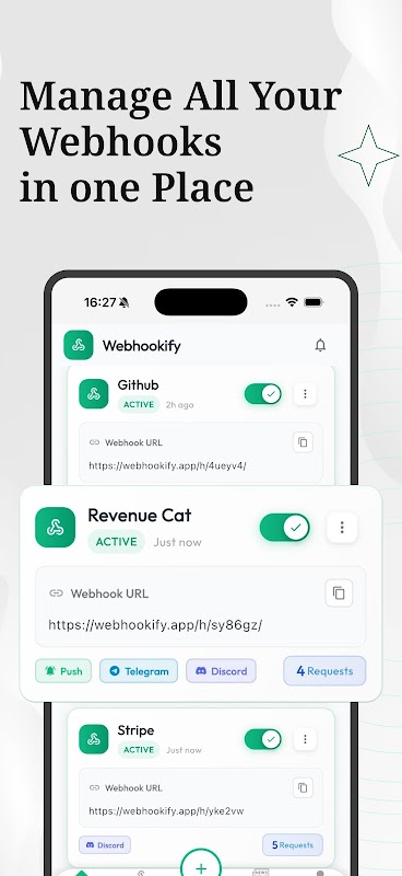 Unduh Webhookify hari ini dan ubah platform apa pun menjadi pusat notifikasi pribadi Anda.