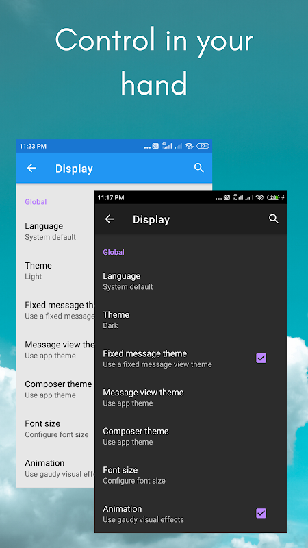 Webmail adalah aplikasi email independen untuk sistem operasi Android dengan Auto EMAIL Configure, Push mail menggunakan IMAP IDLE, Performa yang lebih baik, Penyusunan pesan, tanda tangan email, Bcc-to-self, langganan folder, semua sinkronisasi folder, konfigurasi alamat-kembali, keyboard pintas, dukungan IMAP yang lebih baik, Menyimpan lampiran ke SD, Sampah Kosong, Penyortiran Pesan.