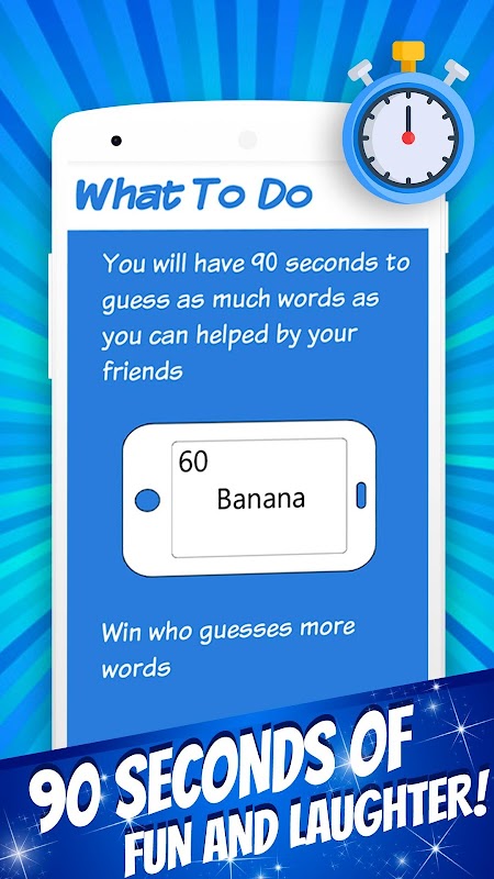 Untuk memulai, Anda harus memilih setumpuk dari lebih dari 20 kategori berbeda yang tersedia. Setelah itu, Anda harus menempelkan ponsel di dahi dan sejak saat itu Anda akan "berubah" menjadi kata yang muncul di perangkat tersebut. Teman-teman Anda harus membantu Anda menebak apa yang Anda jawab, menirukan, mulai menari, menggambar, bernyanyi, atau apa pun yang menurut mereka cocok untuk Anda. Orang yang menebak lebih banyak kata dengan benar menang!