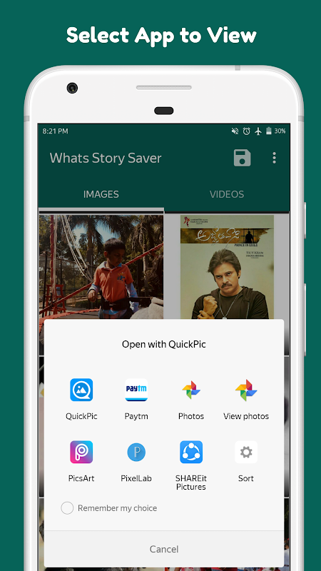 Sekarang Pilih App Favorit Anda untuk Lihat Gambar / Video.