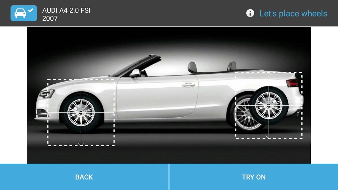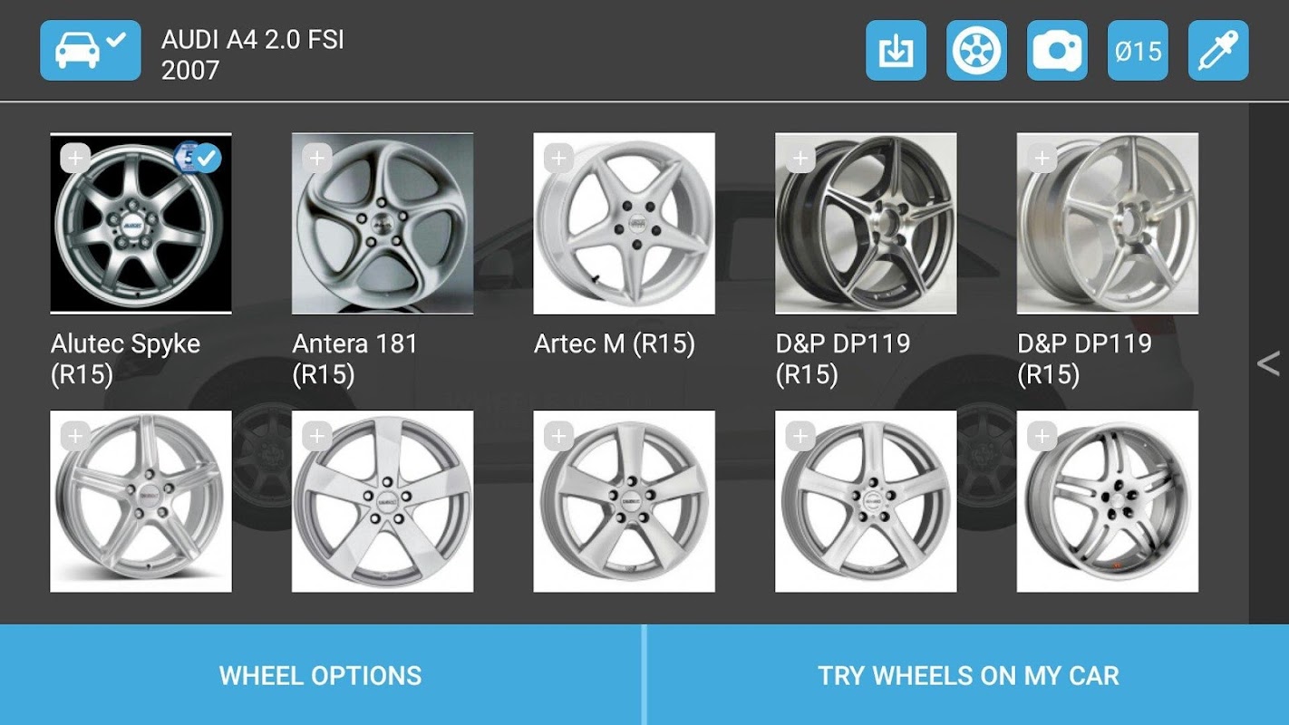 WheelsVision (roda simulator) - aplikasi sederhana dan berguna untuk roda pas di mobil Anda.
