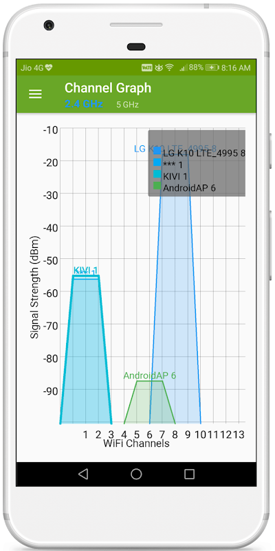 - Tekan bar judul untuk beralih antara pita WiFi 2.4 dan 5 GHz.