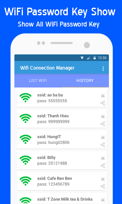 Tampilkan kata sandi WiFi, WiFi Analyzer dan WiFi Auto Connect.