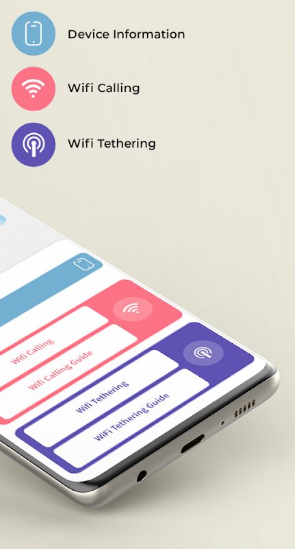 Saat ini, Banyak ponsel ritel memiliki fungsi "Panggilan Wifi" tetapi tidak ada entri menu untuk mengaktifkannya, Aplikasi dapat memeriksa fungsi tersembunyi dan mengaktifkannya jika dapat digunakan.