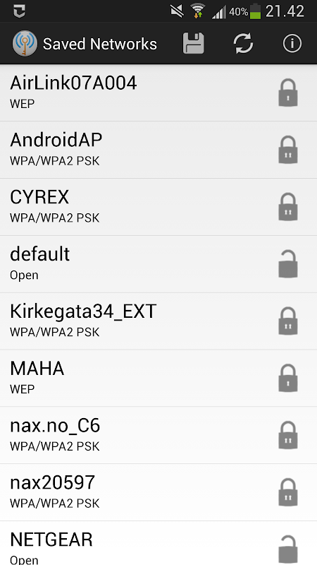 NOTE: Wifi Password Key Recovery will NOT tell you passwords to networks you have not connected to.