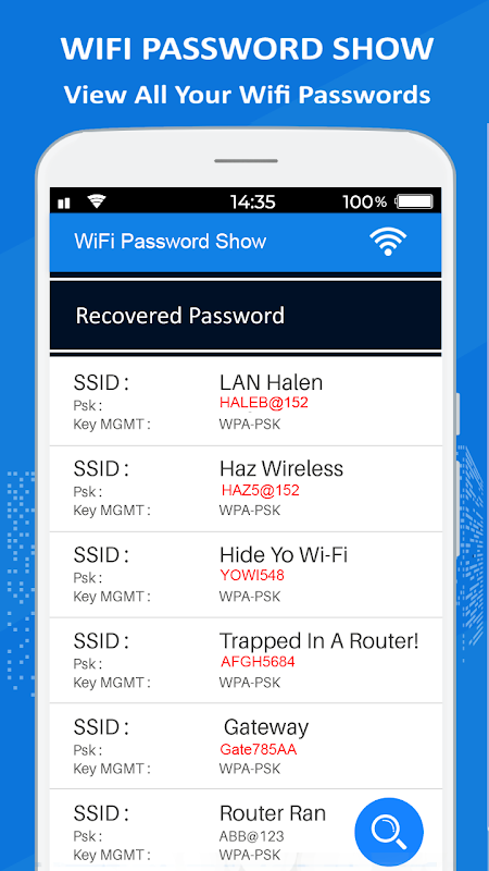 • WiFi Password Show adalah aplikasi pemulihan kunci kata sandi WiFi terbaik.
