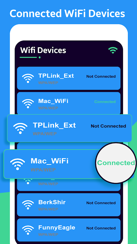 - Tampilkan daftar Semua koneksi Wi-Fi yang terhubung.