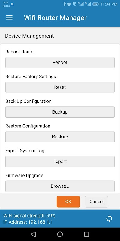Manajer router WIFI apa pun dengan pemeriksa kekuatan tunggal dan Daftar perangkat yang Terhubung.