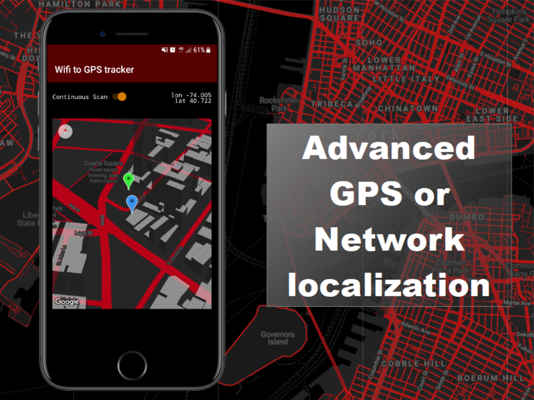 Pelacak Wifi ke GPS memungkinkan Anda untuk memindai dan mendaftarkan titik akses wifi di dekat Anda.
