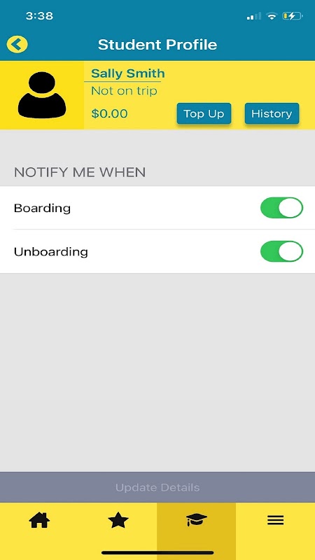 Anda juga dapat diberi tahu kapan pun anak-anak Anda naik atau turun dari bus, membayar tiket bus sekolah Anda, melihat riwayat perjalanan anak-anak Anda dan menerima peringatan dari sekolah atau Willunga Charter dan banyak lagi.