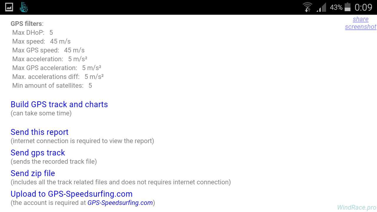 The recorded session can be also uploaded into GPS-Speedsurfing.com site.