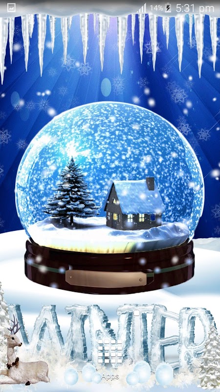 Winter Live Wallpaper is a beautiful animated screensaver with falling 2D / 3D snowflakes and snow, frozen window effect , snow globe (frost flowers), set of winter backgrounds and much more.