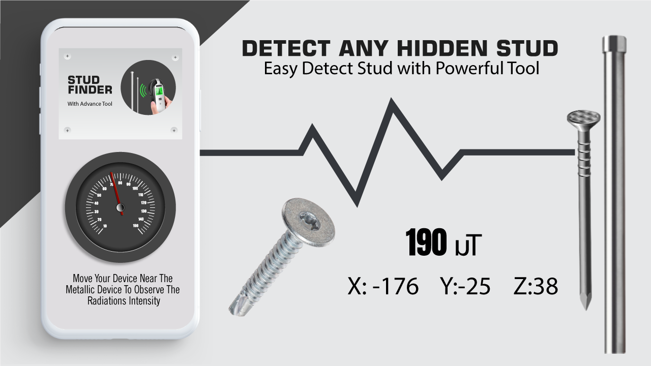 Stud finder and stud detector is specially designed for those users who looking for screw detector or metal stud finder scanner. This all in one wire and cable tracker- Stud detector app having special user friendly interface, anyone can use it easily and detect any type of studs, screw, metals, electric wires, nuts, etc. so don’t waste any more time download our stud finder and metal detector app which is freely available on play store, and don’t forget to rate us better.