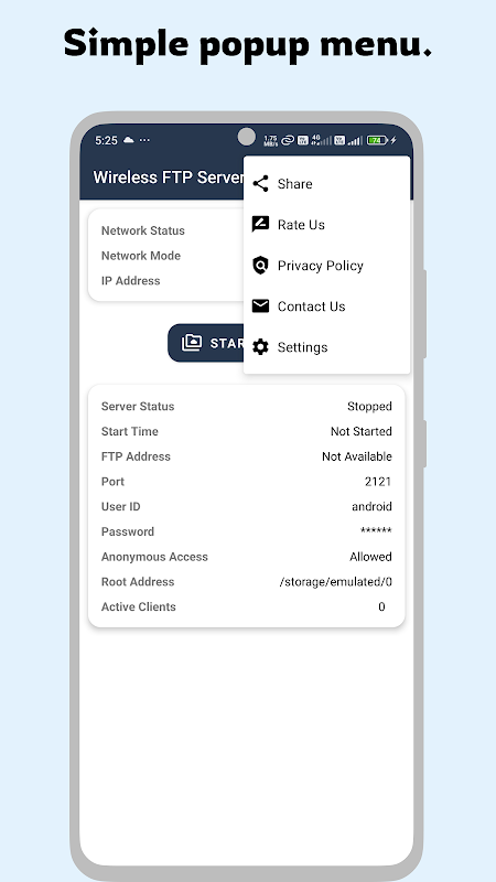 2. Luncurkan aplikasi Server FTP Nirkabel dan mulai server.