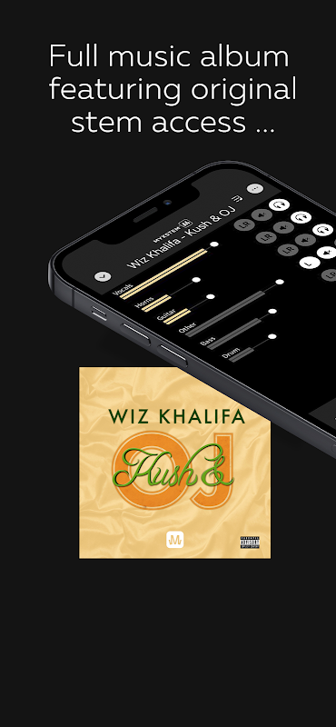 'Wiz Khalifa - Kush & Orange Juice' adalah rilis aplikasi MYXSTEM, yang memungkinkan pengguna untuk sepenuhnya mengontrol pengalaman mendengarkan. Aplikasi ini memiliki fitur mute, solo, pan dan fade untuk setiap batang bersama dengan looping dan lembaran musik. Dengan menyesuaikan level setiap instrumen (batang), musisi dapat membangun perpaduan sempurna untuk dimainkan dan dinyanyikan bersama. Semua rilis album sebagai aplikasi dari MYXSTEM menghadirkan audio interaktif untuk menciptakan pengalaman musik yang mendalam.