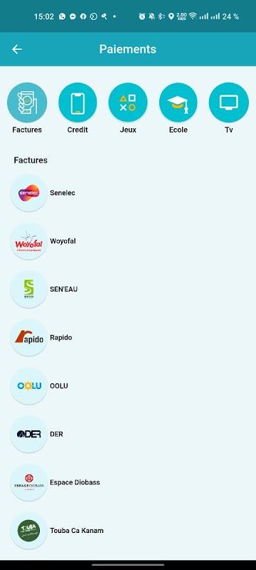 - Faktur & isi ulang (Woyofall, Senelec, SDE, Rapido, SODECI, CIE, Ansamble, Isago, ...)