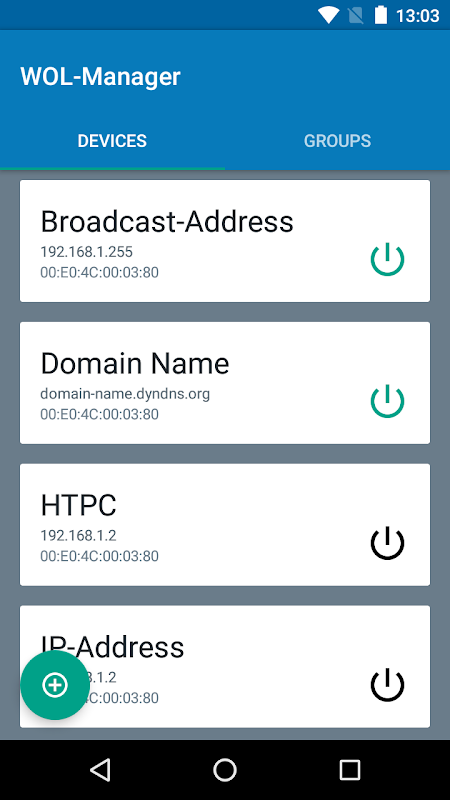 WOL-Manager adalah Wake-On-LAN (dan WAN) App yang mengelola perangkat (PC, NAS, Server atau perangkat yang kompatibel Wake-On-LAN lainnya) dan ternyata mereka hanya dengan satu kali klik dari seluruh dunia . Mengakses data Anda, tidak peduli di mana Anda berada, semua yang Anda butuhkan adalah koneksi internet dan software remote tambahan.