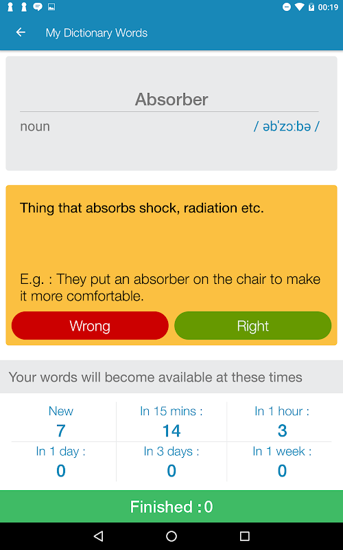 Guru dapat membuat tes waktunya untuk tampil di hari-hari tertentu juga. Aplikasi ini secara acak memilih kata-kata dari set belajar dan menghasilkan 4 butir tes pilihan ganda. Semua data uji disimpan ke sistem manajemen peserta didik secara online.