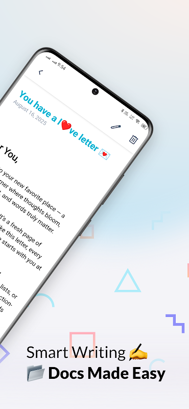 Wordpad Plus berfungsi ganda sebagai konverter dokumen dan pembaca kata untuk Android. Impor, edit, dan ekspor file dengan mudah. Konversi tulisan Anda menjadi PDF profesional atau gunakan teknologi OCR untuk mendigitalkan catatan tulisan tangan. Anda bahkan dapat menandatangani dokumen di Android dengan mudah—menjadikan Wordpad Plus mitra yang andal untuk proposal bisnis, templat dokumen hukum, atau laporan akademik.
