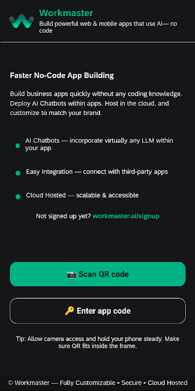 Workmaster adalah aplikasi pendamping untuk meninjau proyek yang dibangun pada Workmaster AI.