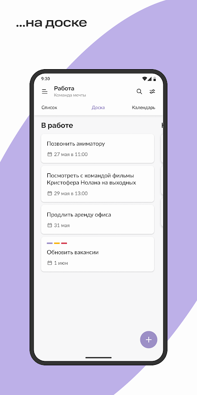 • Контролируйте задачи на канбан-доске, в списке или календаре — как вам удобно.