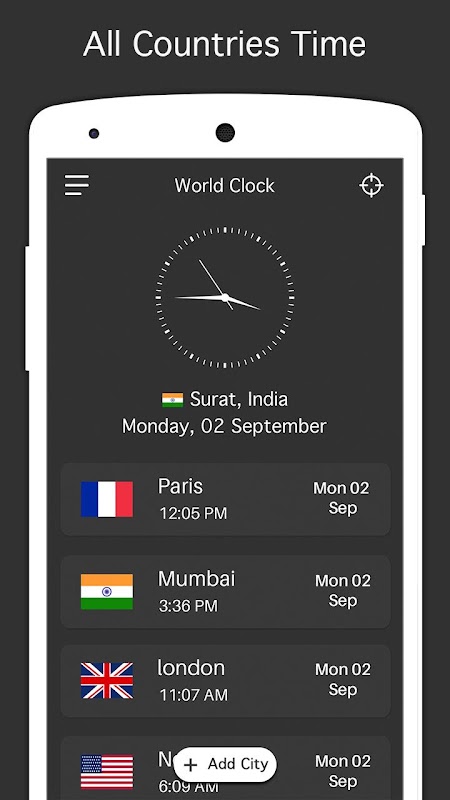 # Anda dapat melihat semua waktu kota di layar tampilan utama.