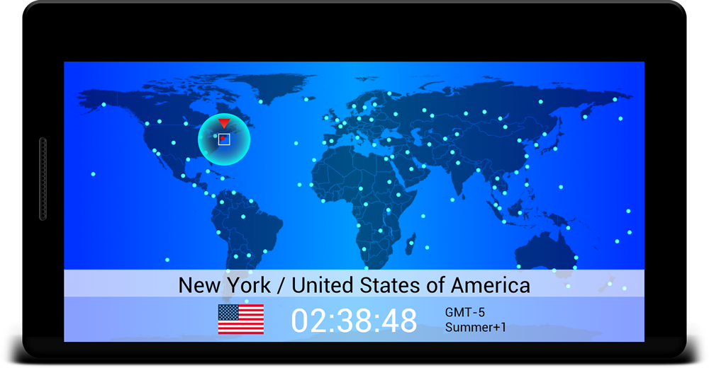 Ketika Anda menyentuh peta dunia , di mana Anda ingin tahu waktu, waktu lokasi ditampilkan sebagai jam digital .