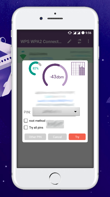 Aplikasi ini menggunakan pin ini untuk mencoba koneksi dan memeriksa apakah jaringan rentan. Ini mengimplementasikan beberapa algoritma yang dikenal untuk pembuatan pin dan beberapa pin default. Ini juga memungkinkan Anda untuk melihat kata sandi WiFi yang tersimpan di perangkat.