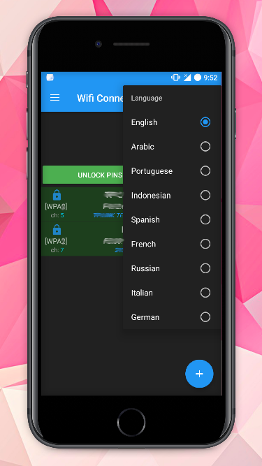 Dengan aplikasi ini Anda dapat mencoba untuk terhubung ke jaringan WiFi Resmi yang memiliki protokol WPS diaktifkan.