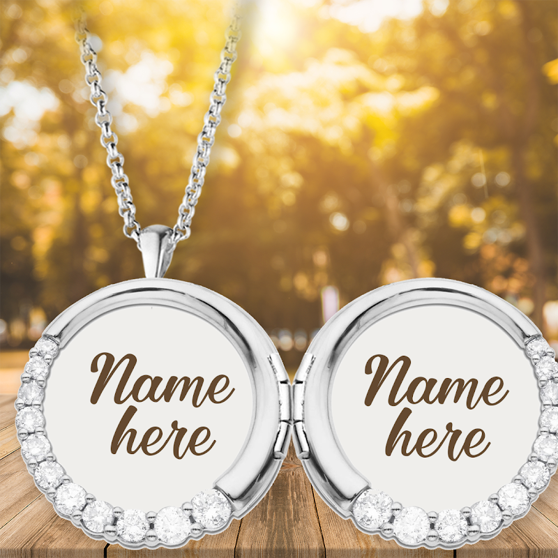 Menulis nama Anda dan sayang Anda di foto liontin indah dengan cinta