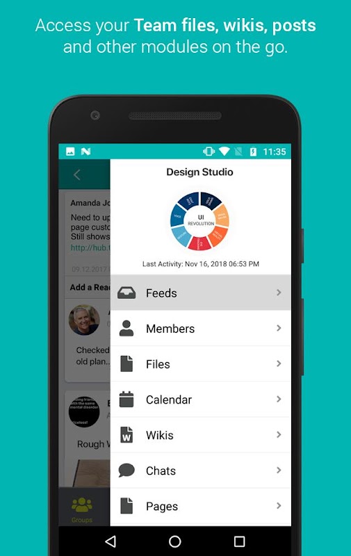 Wupdate untuk Android mencakup semua alat kolaborasi tim dan perusahaan utama dari platform desktop dan web, termasuk: