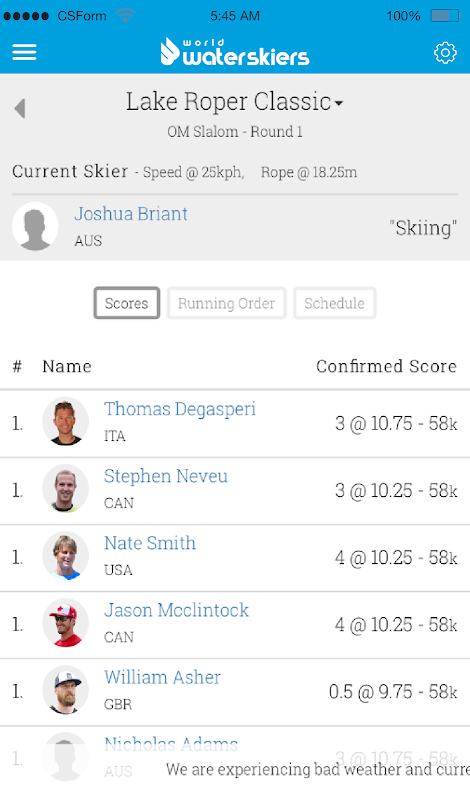 This app will showcase all top water skiers worldwide.