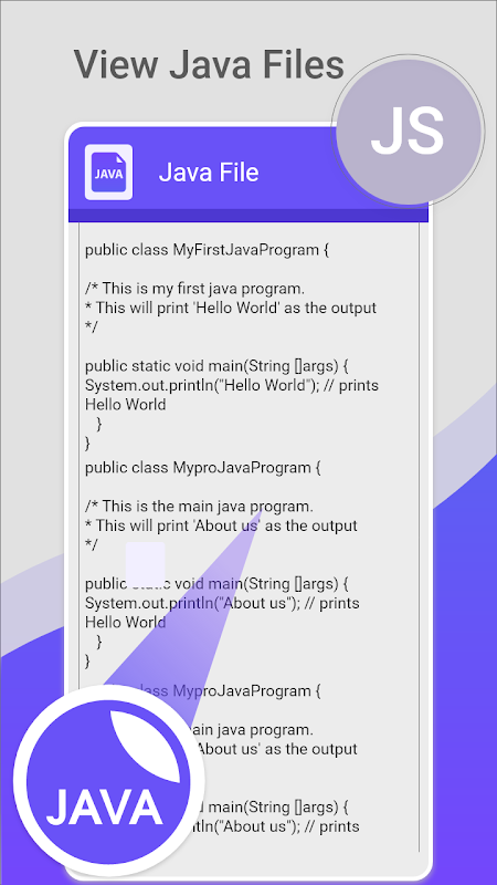 JAVA File Viewer untuk Android memungkinkan Anda membuka dan membaca file java di perangkat Anda. Penampil file JAVA menyediakan antarmuka pengguna yang menarik untuk melihat file JAVA. Penampil file teks adalah penampil file sederhana yang memungkinkan Anda melihat dan membaca berbagai file teks. Dengan modul file teks yang mudah dibaca, penampil file teks ini membuka file teks di perangkat Anda. Xml json viewer dengan mudah mengakses file JSON di penyimpanan perangkat. Anda dapat membuka file JSON dengan pembuka file JSON di Xml json viewer. Dengan cara ini, pembuka file JSON menganalisis dan mengekstrak file JSON.
