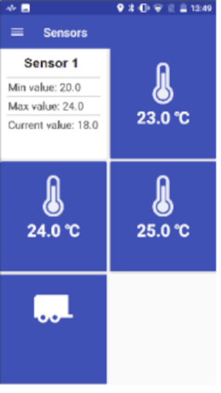 Sensor terdaftar atau difilter ditampilkan sebagai ubin terpisah. Setiap ubin menunjukkan: