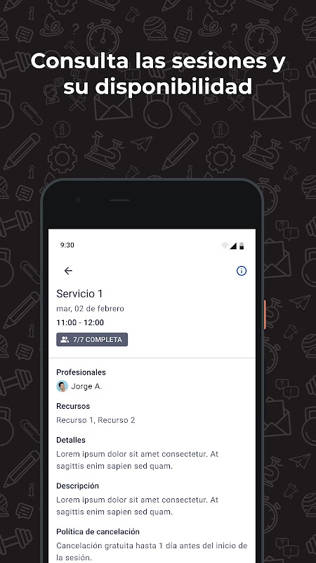 • Periksa sesi yang ditawarkan oleh pusat tersebut, serta ketersediaannya.
