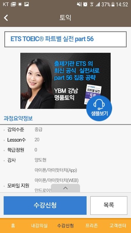 - 현재 수강신청이 가능한 과정들에 대해 수강신청 기능 및 강의내용, 수강일정 확인 (전화영어 포함)