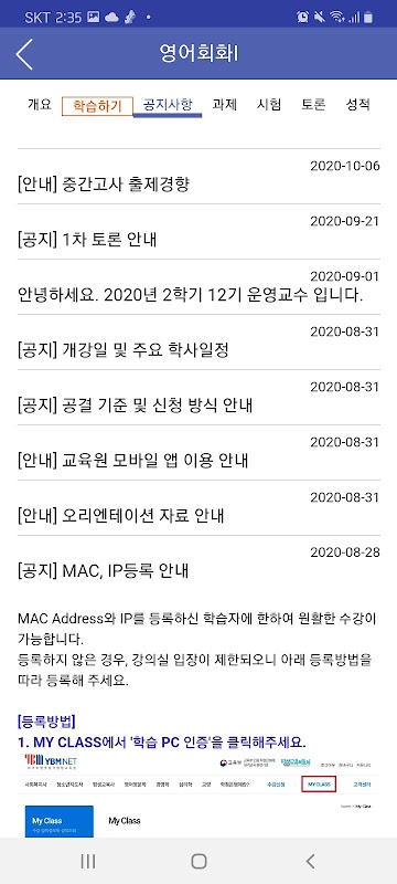 Ini adalah aplikasi kuliah seluler (pengenalan kehadiran) yang disediakan oleh 'YBM Lifelong Education', sebuah lembaga pelatihan pendidikan jarak jauh yang disertifikasi oleh Kementerian Pendidikan.