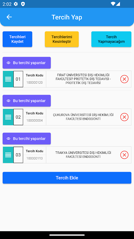 Dipersiapkan untuk mahasiswa Tus, Dus dan YDUS, dengan cara login menggunakan nomor telepon dan password peserta pelatihan. Anda dapat mensimulasikan preferensi Anda dan melihat hasil penempatan Anda dengan menggunakan Robot Preferensi Tusdata, di mana preferensi ÖSYM dibuat persis sama.