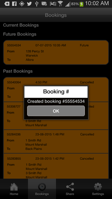 As it is linked to your Yellow Cabs Web Booker account you have access to your history & favourite locations from your Web Booker account.