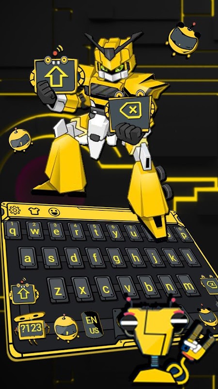 Robot kuning memberi Anda pengalaman pengetikan Bumble auto bot, yang menampilkan efek partikel dan gerakan yang unik. Tema papan ketik Robot kuning ini terdiri atas tidak hanya latar belakang gambar latar Mainan mobil HD, tetapi juga tombol-tombol yang didesain secara khusus.