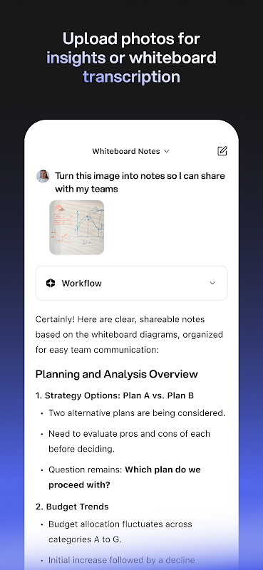 - Ubah foto menjadi wawasan. Unggah gambar untuk transkripsi papan tulis atau analisis visual.