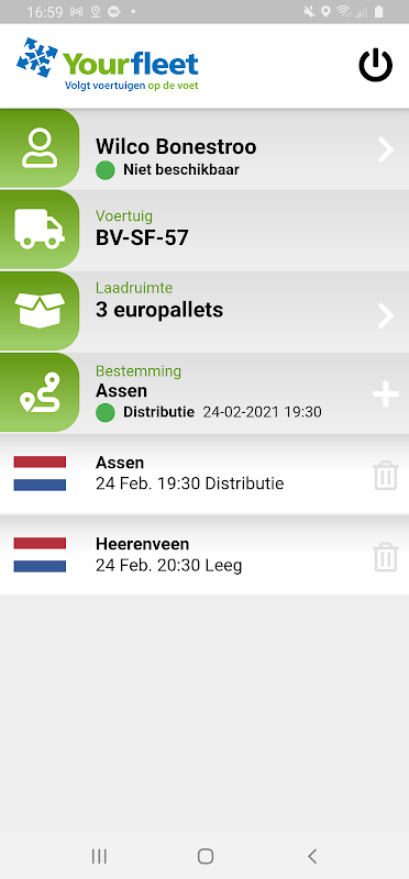 Bestemmingsstatus. Ook kan de chauffeur een status aangeven