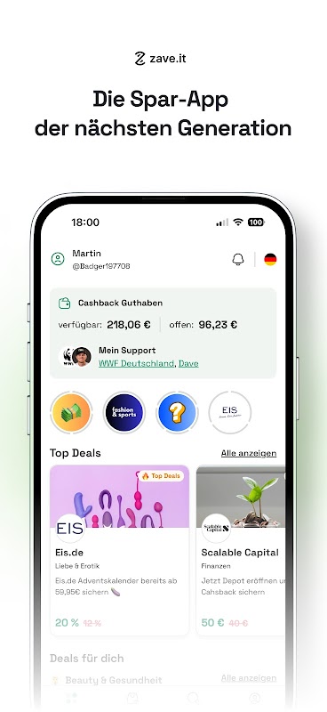 Berbelanja seperti biasa di toko online favorit Anda. Sebagian dari pembelian Anda akan dikreditkan kepada Anda sebagai uang kembali. Dan inilah hal yang penting: semakin besar komunitas kami, semakin baik penawaran yang dapat kami negosiasikan untuk Anda dari toko! Dengan pencipta top seperti Dave, Naturensöhne, Robert Marc Lehmann, Papaplatte, Fritz Meinecke, KAYEF dan banyak lainnya di pihak kami, kami terus berupaya untuk mendapatkan penawaran eksklusif untuk Anda. Bersama dengan para influencer ini dan Anda, kami membangun zave.it menjadi aplikasi tabungan terbaik untuk generasi Y dan Z.